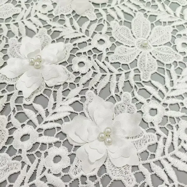 ຜ້າປູພື້ນດອກໄມ້ 3D ທີ່ມີເນື້ອທີ່ມີການຖັກແສ່ວ ຫັດຖະກໍາໂດຍໃຊ້ເຕັກນິກການຖັກແສ່ວສາຍນ້ໍາ, ການອອກແບບທີ່ວາງສະແດງທີ່ຊັດເຈນ, ລວດລາຍທີ່ຄ້າຍຄືກັບຄຸນນະພາບຂອງຮູບຮ່າງທີ່ມີຄຸນນະພາບ. ຜ້າແມ່ນເຫມາະສໍາລັບແຟຊັ່ນທີ່ມີລະດັບສູງ, ການສວມໃສ່ແລະເຄື່ອງປະດັບ, ສະຫມັກສະມາຊິກສະແດງແລະສ້າງຄວາມສະຫງ່າງາມ.