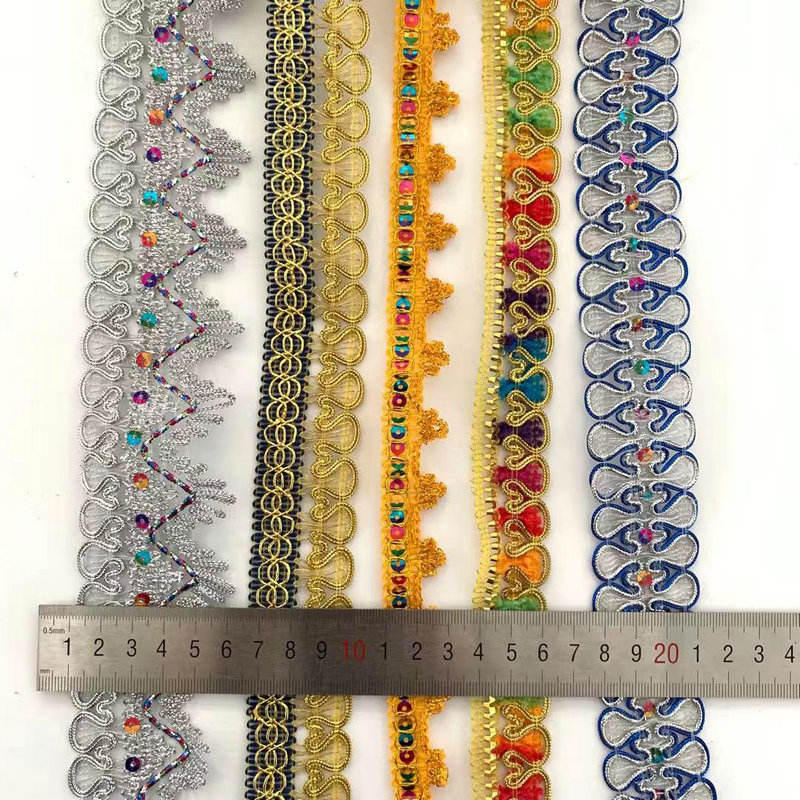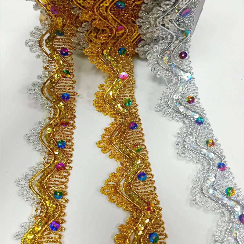 ເຄື່ອງນຸ່ງຫົ່ມອຸປະກອນເສີມຄໍາແລະເງິນໂລຫະເງິນໂລຫະທອງໂລເລກ lace trimolor lace puquin ຄໍາກະໂປງໂລຫະທອງ