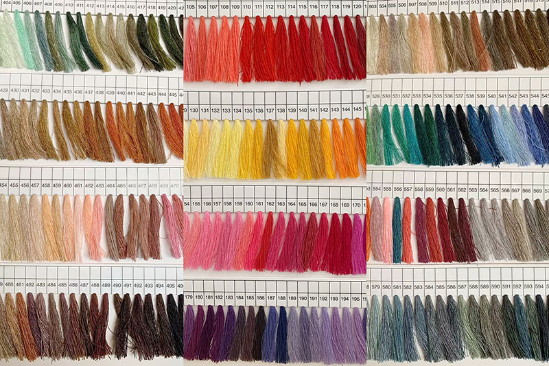 ເຖິງແມ່ນວ່າຢູ່ໃນຖ່ານກ້ອນດຽວກັນ, ການປ່ຽນແປງສີເລັກນ້ອຍສາມາດເກີດຂື້ນລະຫວ່າງຫຼາຍໆສີຍ້ອມສີທີ່ແຕກຕ່າງກັນ. ຖ້າການຈັບຄູ່ສີແມ່ນສໍາຄັນ, ລອງໃຊ້ກະທູ້ຈາກຊອບແວທີ່ຖັກແສ່ວດຽວກັນແລະແມ້ກະທັ້ງເຄື່ອງມືອອນລາຍແລະແມ້ກະທັ້ງເຄື່ອງມືອອນໄລນ໌ແລະພວກມັນຈະແນະນໍາກະທູ້ທີ່ກົງກັນຂ້າມທົ່ວຍີ່ຫໍ້. ສິ່ງເຫຼົ່ານີ້ສາມາດເປັນປະໂຫຍດແຕ່ກວດເບິ່ງຜົນໄດ້ຮັບສອງຄັ້ງ. ທ່ານມັກຈະສາມາດຊື້ບັດຕົວຢ່າງຂອງຕົວຢ່າງຂອງສີກະທູ້. ໃຫ້ຮູ້ວ່າການແຂ່ງຂັນທີ່ສົມບູນແບບບໍ່ເປັນໄປໄດ້ສະເຫມີໄປ. ທ່ານອາດຈໍາເປັນຕ້ອງເລືອກທຽບເທົ່າທີ່ໃກ້ທີ່ສຸດແລະຍອມຮັບການປ່ຽນແປງເລັກນ້ອຍ.
